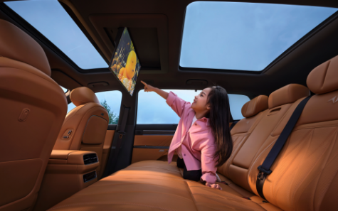 eπ008五座版搭載了同級唯一的21.4英寸智能后排娛樂屏,解決了用戶實實在在的用車痛點。長途旅行時,孩子可以觀看動畫片,成年人可以追劇放松,甚至可以進行簡單的辦公操作。無線投屏功能讓手機內容可以輕松分享到大屏上。