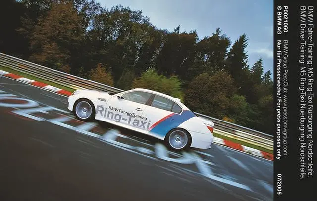自1986年起,歷經各代寶馬M5車型,由諸如"紐北女車王"Sabine Schmitz等專業賽車手擔當司機,行駛超3萬圈,總里程超65萬公里,來自全球超9萬名車迷享受到寶馬Ring Taxi在紐博格林的高性能表演。甚至BBC《Top Gear最高檔》欄目的前著名主持人Jeremy Clarkson,也曾專程前往乘坐并錄制一期專題節目,自此成為車壇佳話。