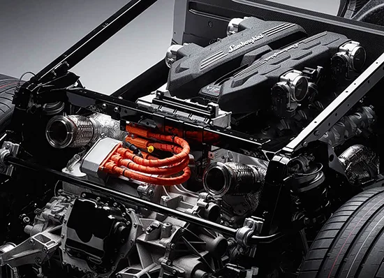 動力方面,Reventon采用6.5L自然吸氣V12發動機和前二后一的三電動機組成的插電式混動系統,系統綜合馬力1015Ps;傳動系統采用橫置布局的8速雙離合變速箱和帶有扭矩矢量分配的四輪驅動系統,0-100km/h加速時間僅需2.5s,0-200km/h加速時間不到7s,最高時速超過350km/h。