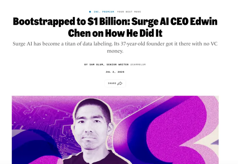 公司一反常態,首次開啟融資,目標10億美元,以承接Scale AI流失的客戶。Surge AI去年的收入剛好就是10億+美元,目標設置得依然很克制。