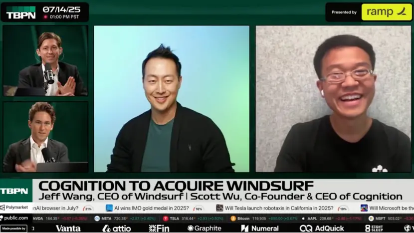 播客TBPN在周一第一時間采訪Windsurf臨時CEO Jeff Wang和Cognition的CEO兼創始人Scott Wu。