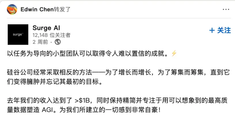 Edwin Chen也不再低調,屬于Surge AI的雷霆行動開啟。