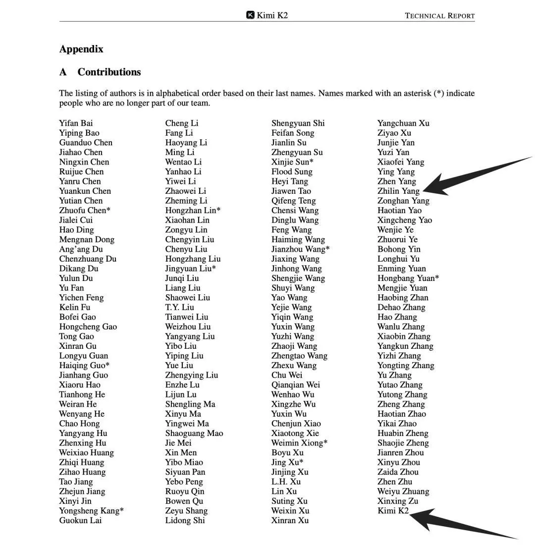 Kimi K2 技術(shù)報(bào)告作者頁(yè)面