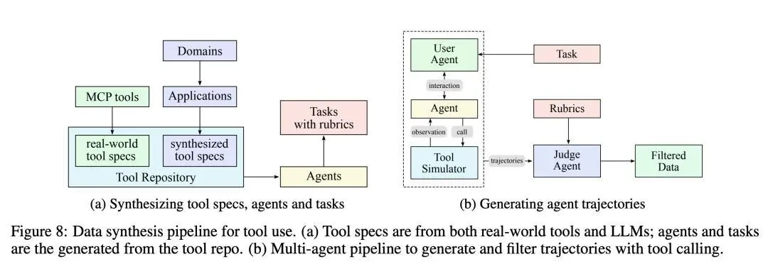 數(shù)據(jù)層面:合成+真實(shí)混合環(huán)境的十萬(wàn)個(gè)工具軌跡為社區(qū)提供了可復(fù)現(xiàn)、可擴(kuò)展的智能體數(shù)據(jù)生產(chǎn)線;