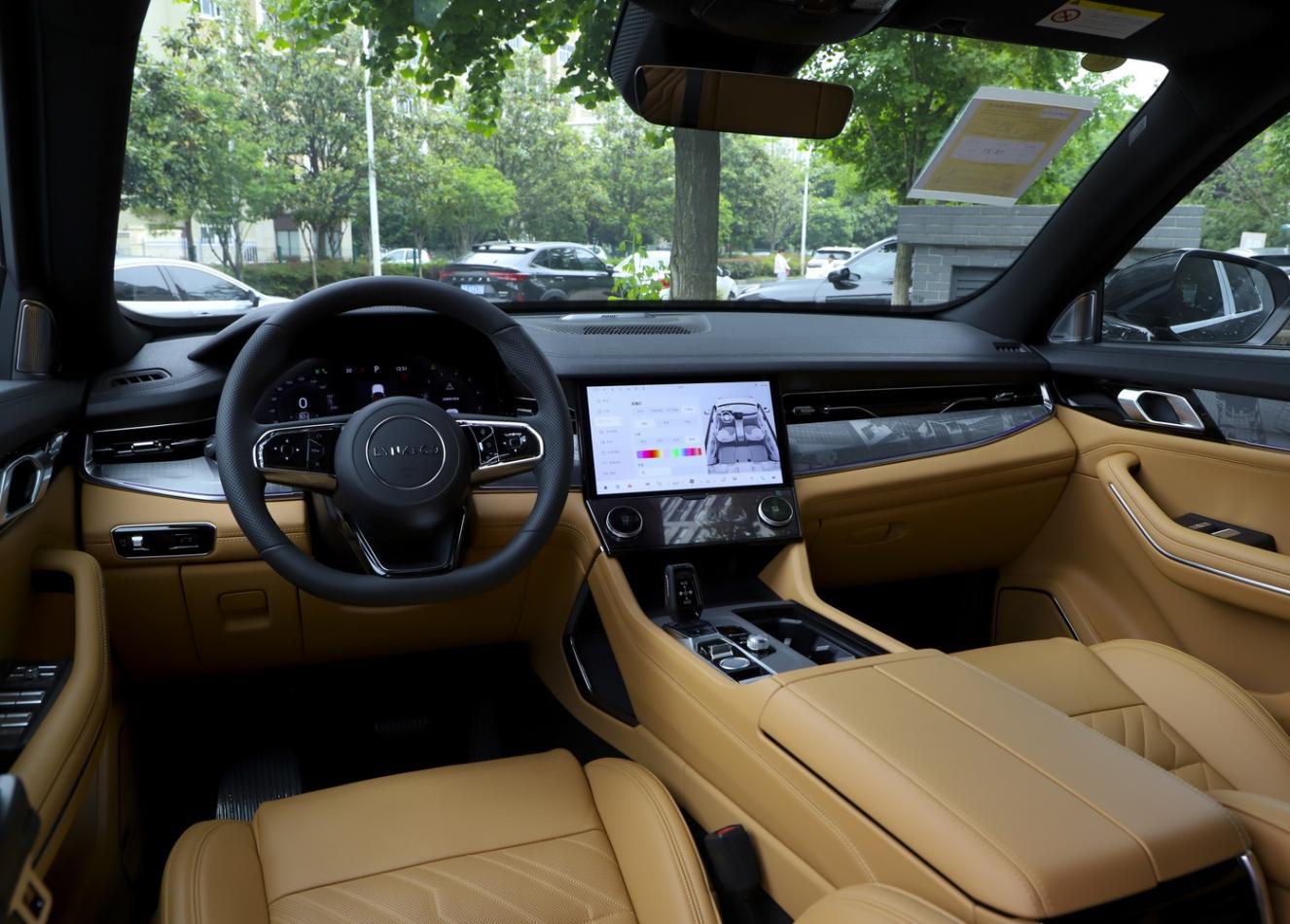 進(jìn)入車內(nèi),新車雙拼色配色很豪華,中控臺(tái)與門板都是有著大面積的花紋飾板鑲嵌,尤其是配備有12.3英寸液晶儀表盤、12.8英寸全彩W-HUD抬頭顯示系統(tǒng)、12英寸中控屏幕+6英寸中控下屏,整體科技感營造的很出色,并且標(biāo)配LYNK OS N智能座艙系統(tǒng),搭載高通驍龍8155芯片,運(yùn)行很流暢。而且新車還有著Bose定制音響系統(tǒng)、海洋之謎香氛系統(tǒng)、Nappa真皮座椅(前排座椅帶通風(fēng)/按摩/加熱功能)、電動(dòng)方向盤帶記憶功能、四溫區(qū)獨(dú)立空調(diào)系統(tǒng)等配置,進(jìn)一步來增加新車的豪華氛圍。