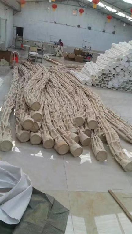 褶皺除塵布袋與普通除塵布袋相比,過濾面積顯著提高,可增大過濾面積2.5-3倍左右,過濾效率高。降低了整個體布袋除塵器的壓差,提高了處理風量。
