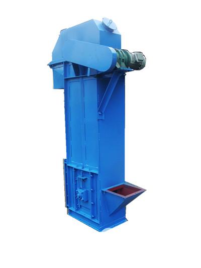 斗式提升機用于垂直或傾斜時輸送粉狀、顆粒狀及小塊狀物料。斗提機的優點是:橫斷面上的外形尺寸較小,可使輸送系統布置緊湊;提升高度大;有良好的密封性等。缺點是:對過載的敏感性大;料斗和牽引構件易損壞。