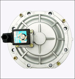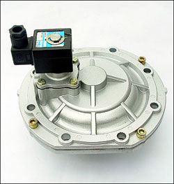 電磁脈沖閥是脈沖袋式除塵器清灰系統的噴吹氣路“開關”,而閥體內的膜片又是其正常運行的關鍵所在,由脈沖控制儀控制閥體內的膜片震動進街上脈沖“沖量”噴吹清灰,膜片后控的面積大于前控的面積,氣壓作用力大.使膜片處在關鍵位置.脈沖控制儀輸入電信號,使電磁先導頭吸合運性,打開卸荷孔.膜片后控的壓力氣體迅速排出.膜片前控的壓力氣體將膜片抬起,打開電磁脈沖閥通道進街上噴吹,電信號消失,電磁先導頭的彈簧使動柱立即復位封閉卸荷孔,膜片后控氣體壓力和彈簧作用力使膜片關閉通道,電磁脈沖閥停止噴吹,膜片上的阻力孔,當先導頭動柱抬起,氣體壓力卸荷時,起到阻力氣流的作用,當卸荷封閉時,使壓力氣體迅速充滿到后腔,使膜片關閉通道,停止噴吹電磁脈沖閥彈簧與電磁脈沖閥膜片配套,根據脈沖控制儀電信號的開始與消失,彈簧使動柱立即開啟與復位打開或封閉卸荷孔,配合電磁脈沖閥開啟,噴吹和關閉.卸料器