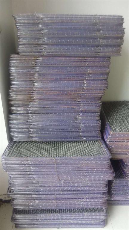 有機硅除塵骨架在全部焊接完成后,整體_多余的焊渣,漏焊的補焊,檢查合格后投入去油池中滲泡15-30分鐘后,撈出在投入清水池滲泡15-30分鐘撈出摞在架子上控水。控干后放入加溫烤漆房,加溫到200-300度時取出,單個噴涂有機硅粉料,全部骨架噴涂完后在放入烤漆房加溫,加溫到200-300度停止加溫,等烤漆房溫度自然降到0度,這時有機硅除塵骨架熱處理工藝_完成了,除塵骨架的全新成品_生產完成。