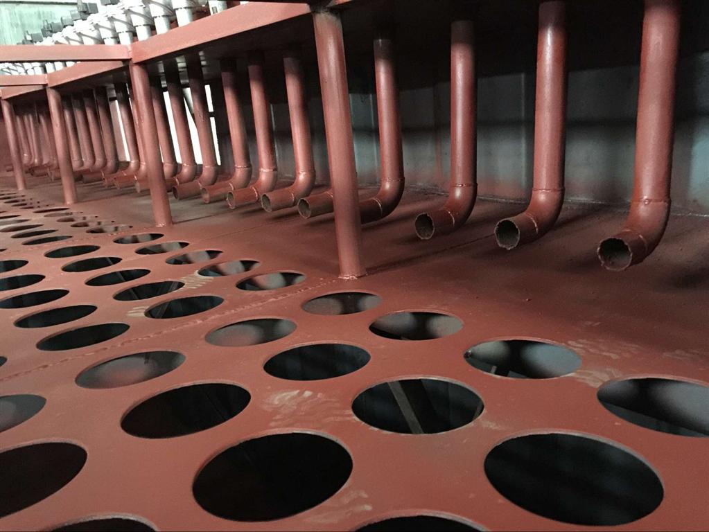 脈沖布袋除塵器花板的鋼板厚度一般為4到6毫米之間,主要取決于過濾室內懸掛在布袋除塵器濾袋的條數。為增加脈沖布袋除塵器花板的剛度性能,花板上應增設_數量的加強筋?;ò逋庥^應平整、光潔,不應有翹曲或花板平面凹凸不平等缺陷,其平面度偏差數個小于花板長度的2/1000?;ò蹇椎募庸捎每茖W全自動沖孔或采用等離子切割,不允許采用氣割。用彈性脹圈固定濾袋花板孔徑d的公差為正負1MM.花板尺寸,所以決脈沖囊除塵器制度尺寸之機。