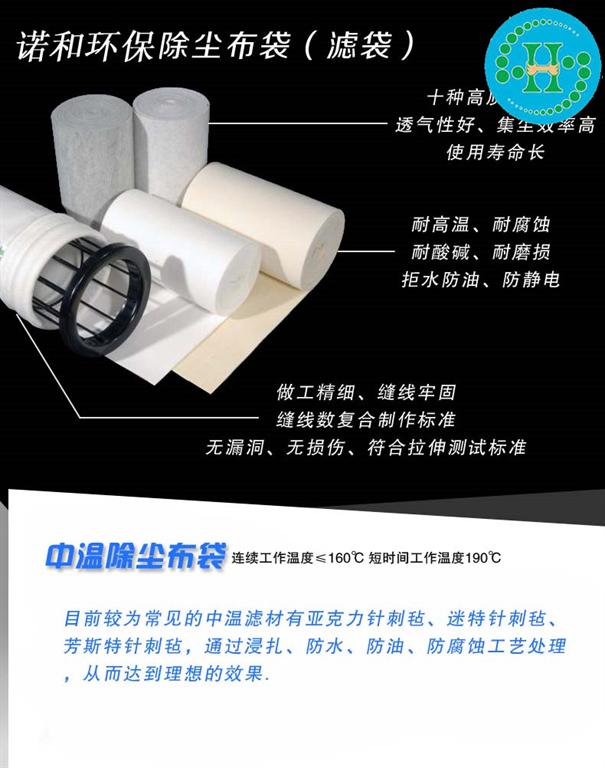 常規條件下,我們要求除塵器布袋能夠耐150℃以下高溫即可,這種情況下滌綸、丙綸、晴綸、錦綸等化學纖維_可以滿足.但是煙氣溫度比較高的情況下,則需要選擇_的濾料了.這時候需要采用玻璃纖維除塵器布袋、氟美斯除塵器布袋、美塔斯除塵器布袋、PPS除塵器布袋等.布袋除塵器