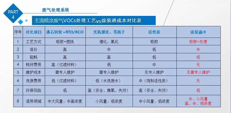 噴涂廢氣VOCs:中低成本投入,運(yùn)行和維護(hù)成本極低。